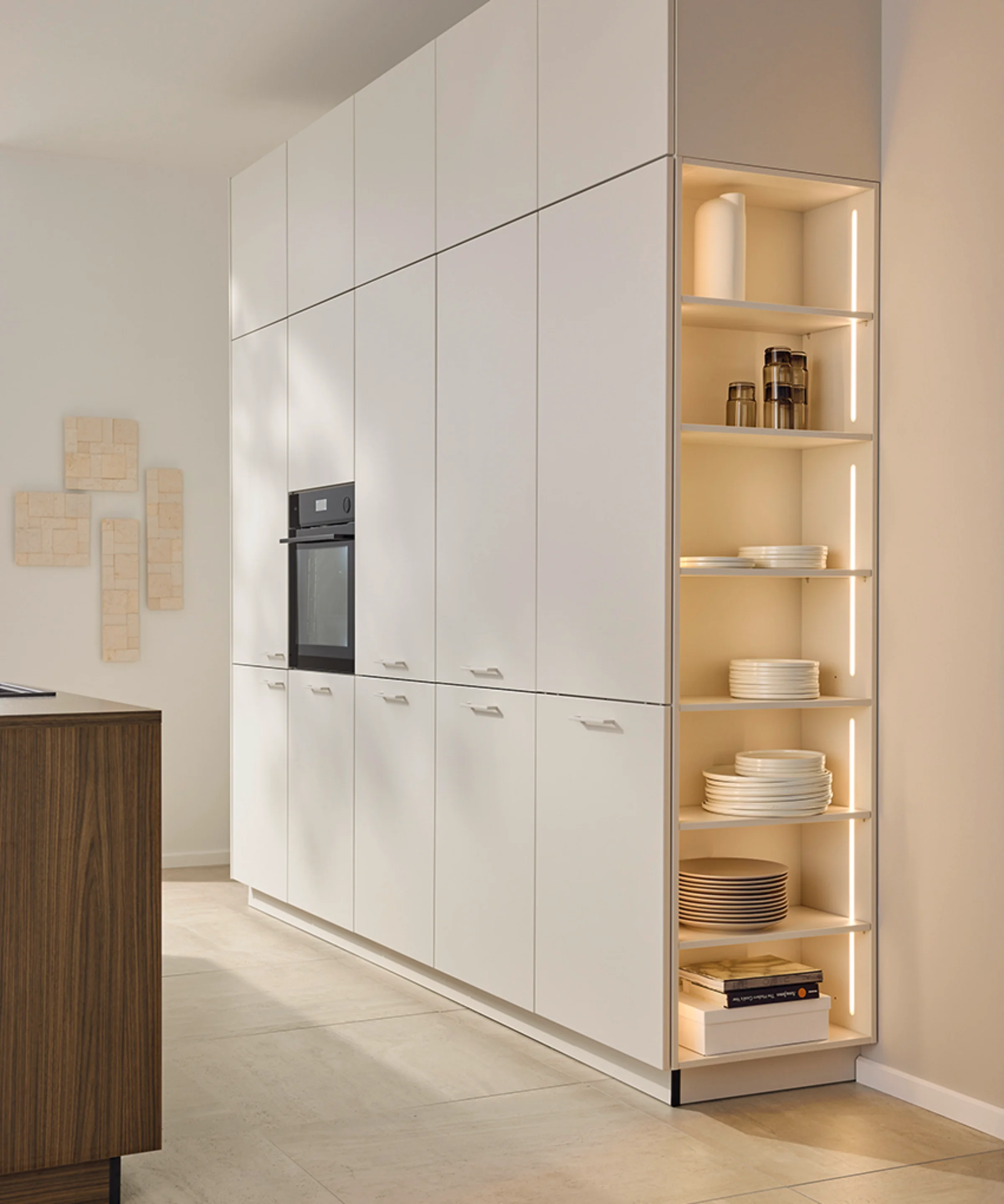 Ein Konzept, das Front, Griff und Wand zu einer harmonischen Einheit macht.