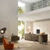 The tried-and-tested matt lacquer concept is being expanded this year to include new design options. New colors and support fronts as well as a matching handle have been added to the range. In addition to the 18 shades that have been available to date, which can be harmoniously combined with each other in any combination, two further light shades have been added: Greige and Cashmere. These pick up on the current trend towards soft, nature-inspired tones and create new planning scope for contemporary, modern living environments.