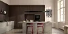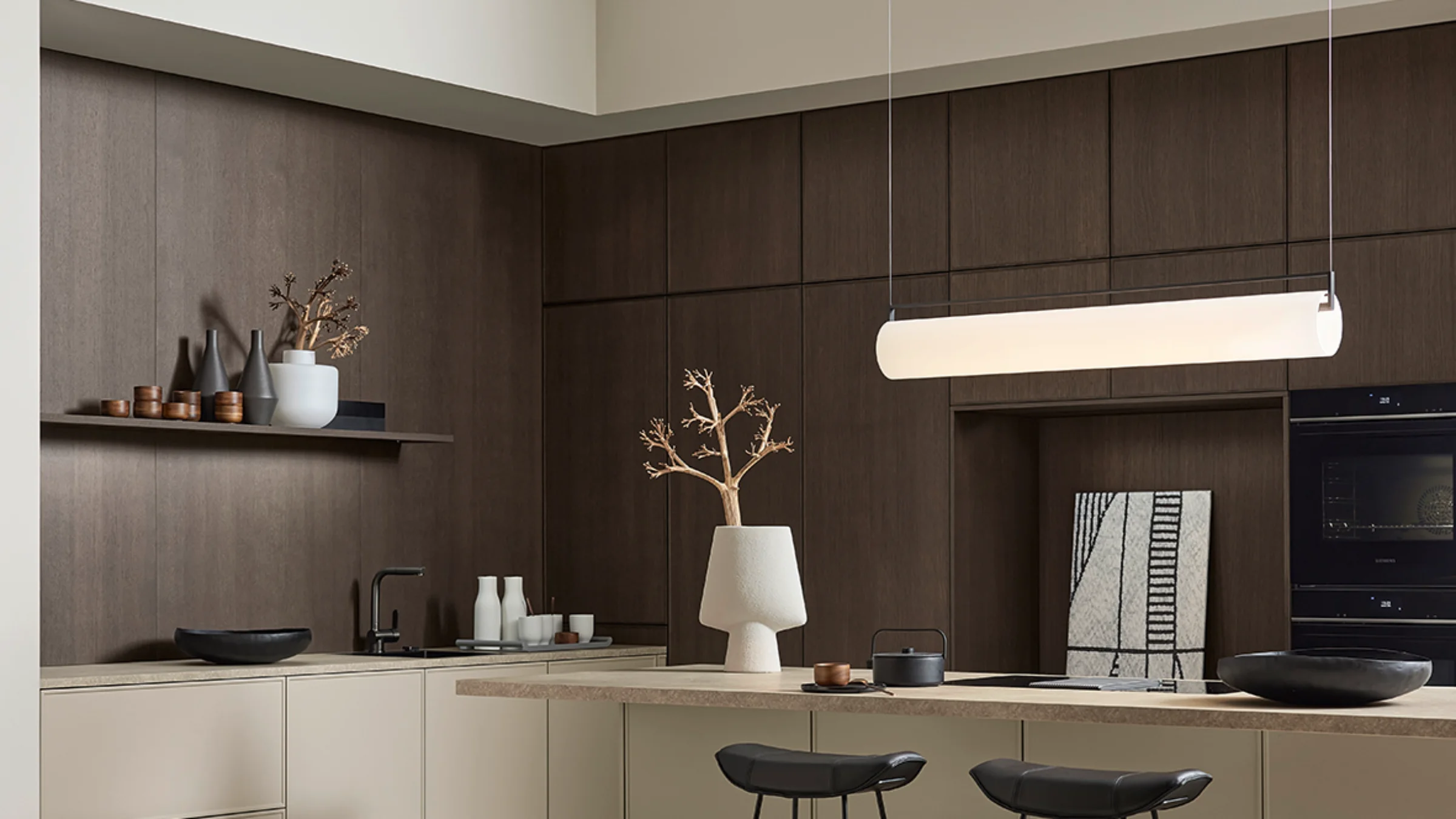 Light, lines, and clean lines define this kitchen design. Inspired by urban architecture, it creates a harmonious interplay of materials, form, and space. The neoSLIM solid wood front in Oak Tobacco adds warmth and depth, while EVORA LACK in soft mat Greige creates calm, elegant surfaces. Slim frames, precise edges, and minimalist elements emphasize the clean design, giving the kitchen a look that is both modern and timeless.