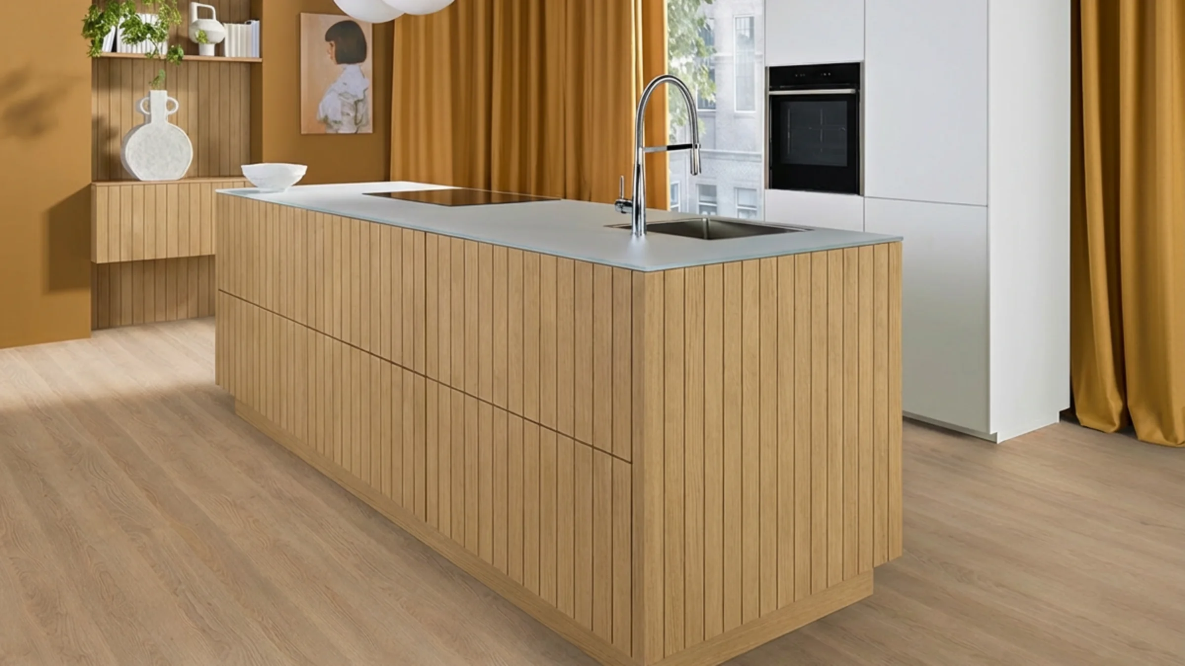 neoLINE in Oak Bianco from the real wood concept adds a subtle, natural texture to the design and emphasizes its warm, light appearance. Additionally, PERFECT PLUS enhances the look with Anti-Fingerprint 2.0 surface enhances the brightness and ensures a clean, minimalist look — while keeping the surface particularly easy to maintain in daily use.