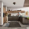 Los diseños de cocina modernos permiten adaptar individualmente la altura de trabajo, por ejemplo, mediante diferentes alturas de armarios o escalonamientos de altura específicos dentro de la cocina. De este modo, las zonas de cocción, lavado y preparación se pueden adaptar de forma óptima a sus necesidades.