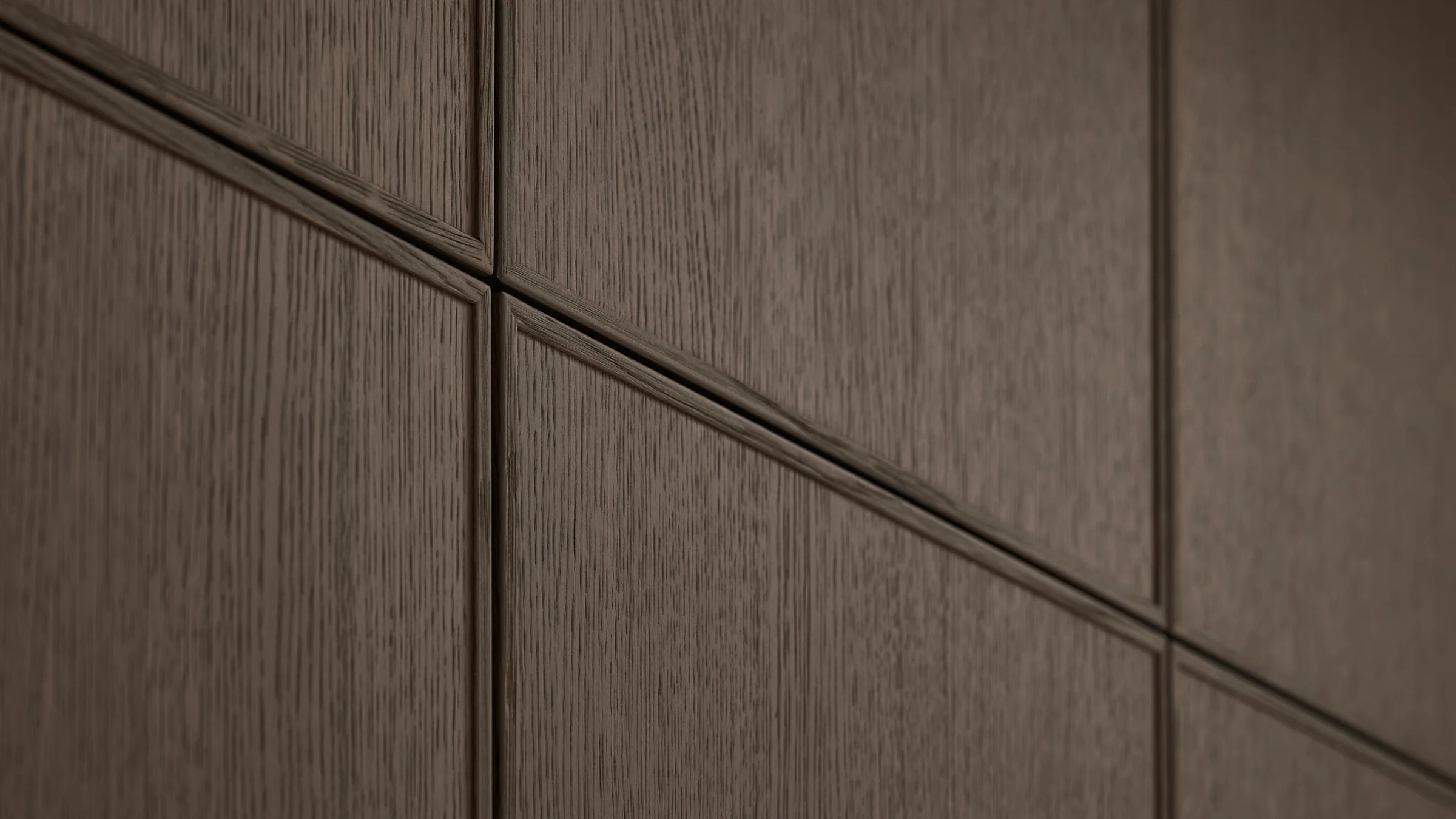 Front neoSLIM stanowi elegancką oprawę nowoczesnej kuchni z prawdziwego drewna. Jako część koncepcji prawdziwego drewna, neoSLIM łączy w sobie naturalność materiału i maksymalną swobodę projektowania. Matowa lakierowana powierzchnia forniru podkreśla autentyczne usłojenie drewna, a delikatny wygląd ramki frontu tworzy stylowy efekt głębi.